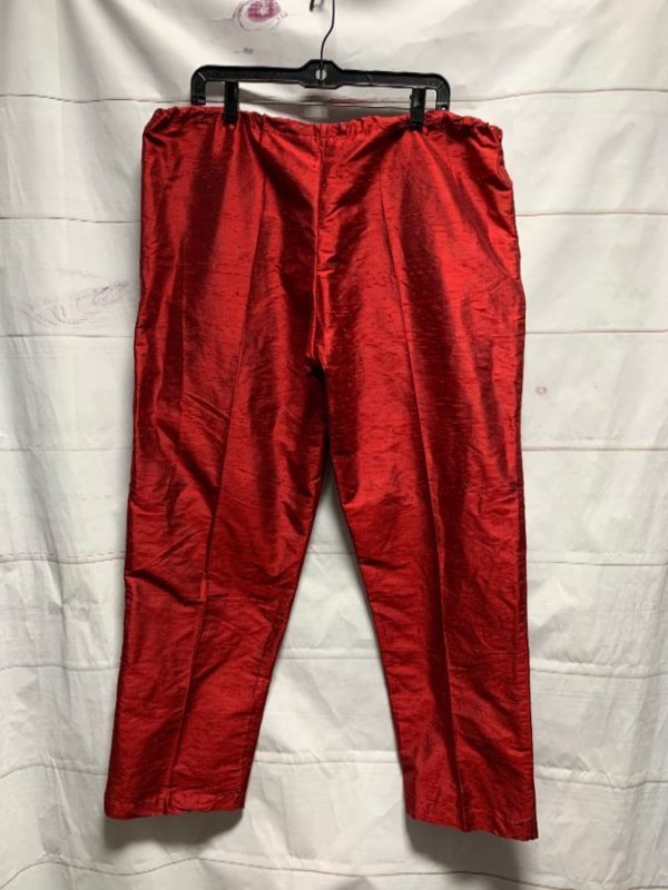 Pants, silk, drawstring waist, straight leg, solid colored, made in India, red, size S