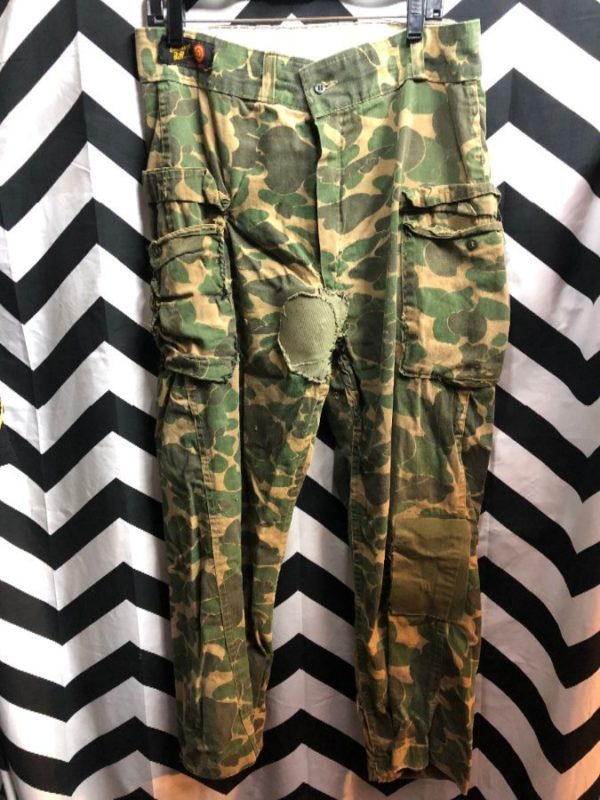 PANTS CAMOUFLAGE PATCHED ARMY MILITARY CARGO AS IS