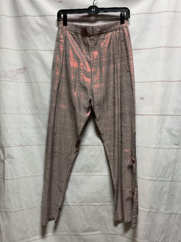 NADYA PANTS, SPARKLING TWILL, ELASTIC WAIST, HAND MADE IN INDONESIA, LOOPS & BUTTON LEG CLOSURE, PINK/GRAY, SIZE 2