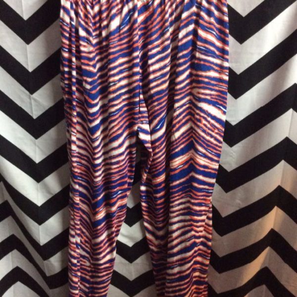 Pants, cotton, elastic waste, Tiger design print, blue/orange/white, size one size fits all