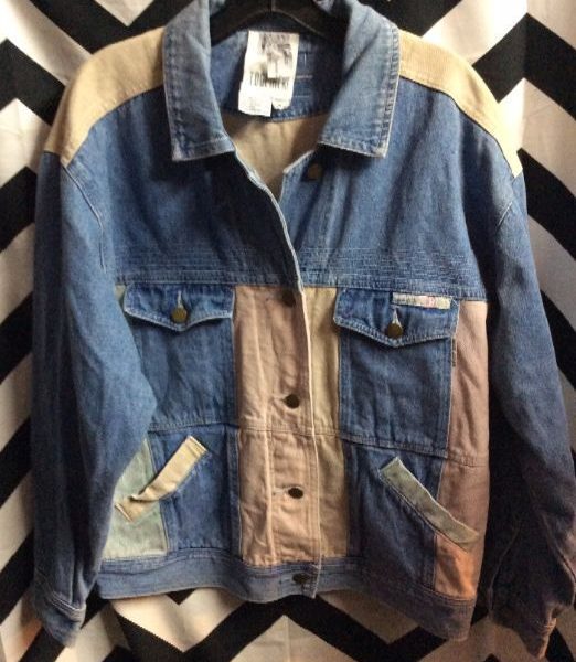 DENIM JACKET – BUTTON-UP – PASTEL COLOR BLOCK DESIGN