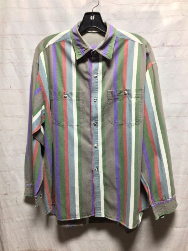 1990S VERTICAL STRIPED CORDUROY LONG SLEEVE BUTTON UP SHIRT