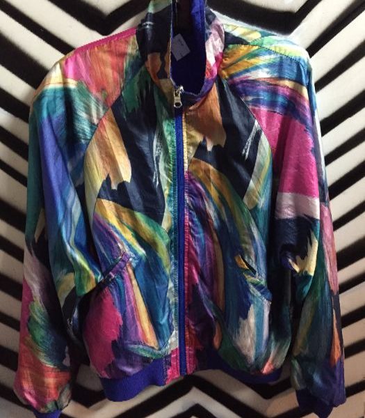 Windbreaker, reversible, zip-up, pastel pattern design, blue/multi-colored, size S
