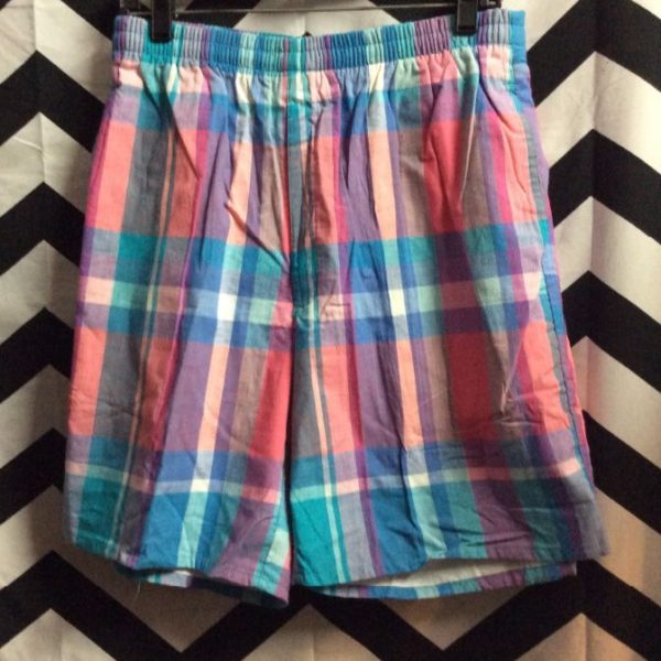 WOOLRICH SHORTS – ELASTIC WAIST – PASTEL COLORS – PLAID DESIGN *DEADSTOCK
