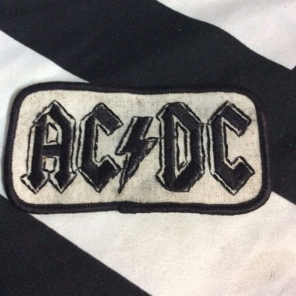 Embroidered patch, AC/DC, rectangle shape, old stock, white/black, size 2″ x 4″