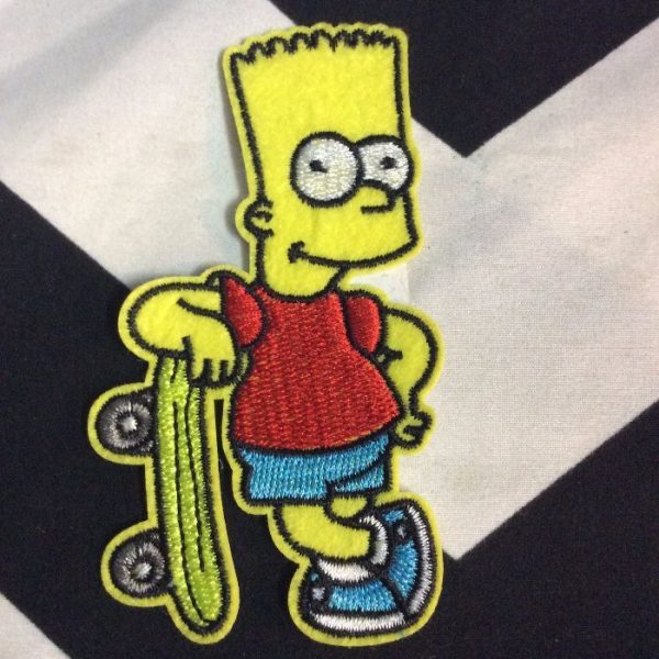 Bart Simpson patch, embroidered design of Bart leaning on skateboard