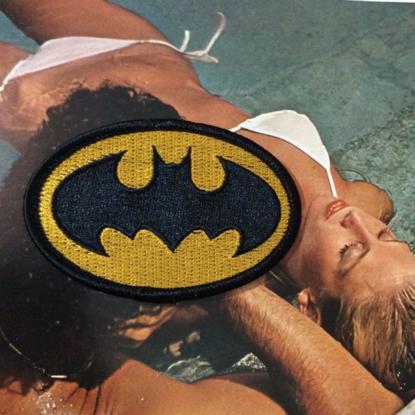 EMBROIDERED PATCH, OVAL SHAPE, BAT SYMBOL, YELLOW/BLACK