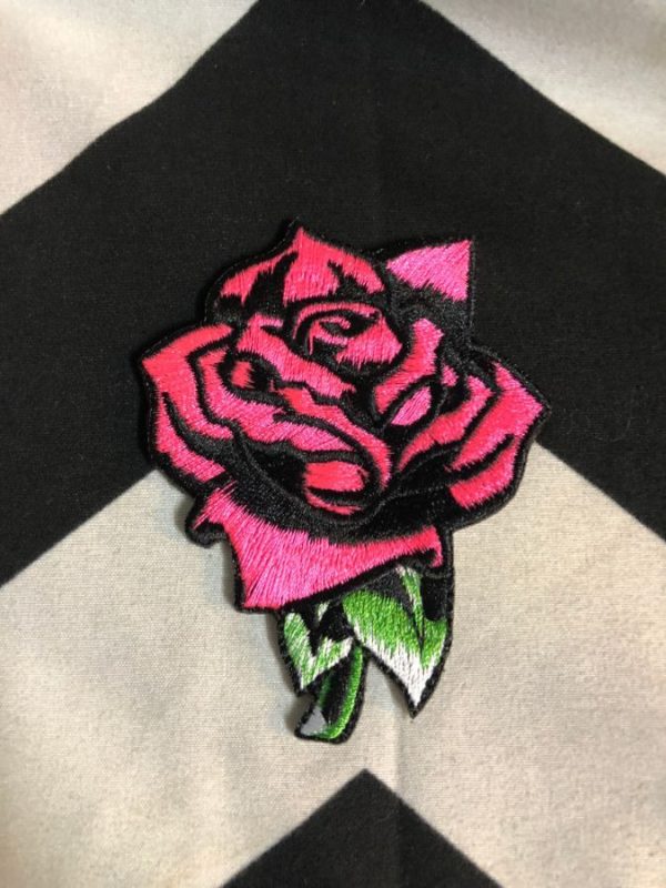 Embroidered patch, classic rose, hot- pink/black/green