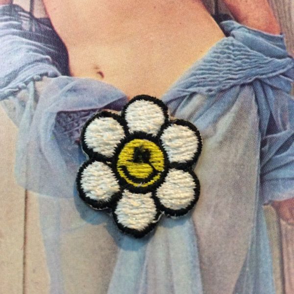 EMBROIDERED PATCH – DAISY FLOWER W/ SMILEY FACE