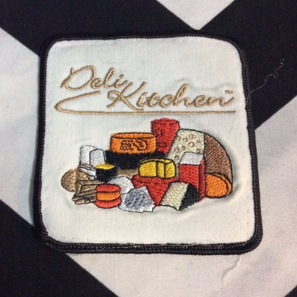 1980’s embroidered patch, Deli Kitchen, novelty, old stock, white/tan/multi, size 3.5″