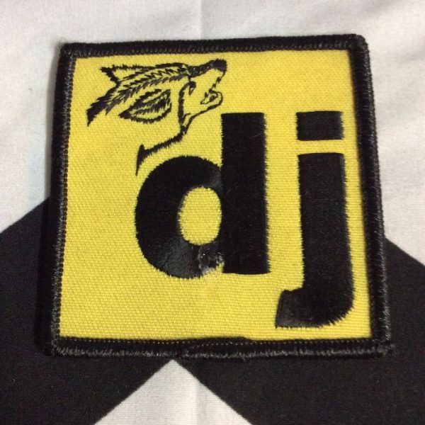 Screen printed patch, DJ, howling wolf, square shape, old stock, yellow/black, size 3″