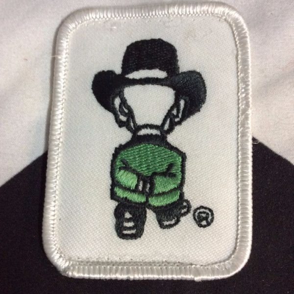 Embroidered patch, Lil’ Guy, cowboy hat, old stock, white/green/black, size 2.75″