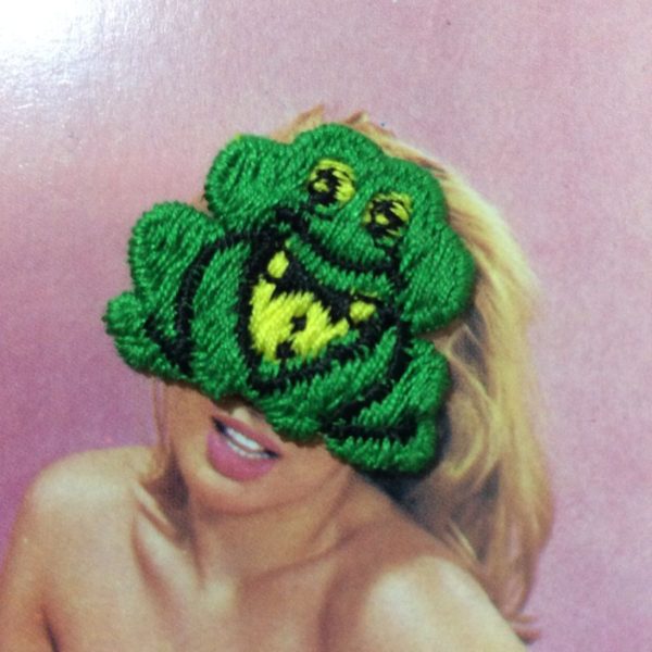 Embroidered patch, mini frog, old stock, grass green/lime green/black