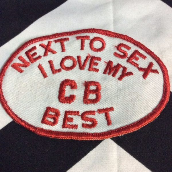 Embroidered patch, Next to Sex I Love My CB Best, old stock, red/white, size 4.5″