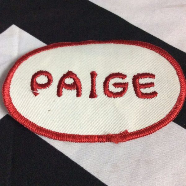 EMBROIDERED PATCH – PAIGE – OVAL SHAPE *deadstock Embroidered patch, Paige, oval shape, deadstock, white/blue & red, size 3″ x 4.5″
