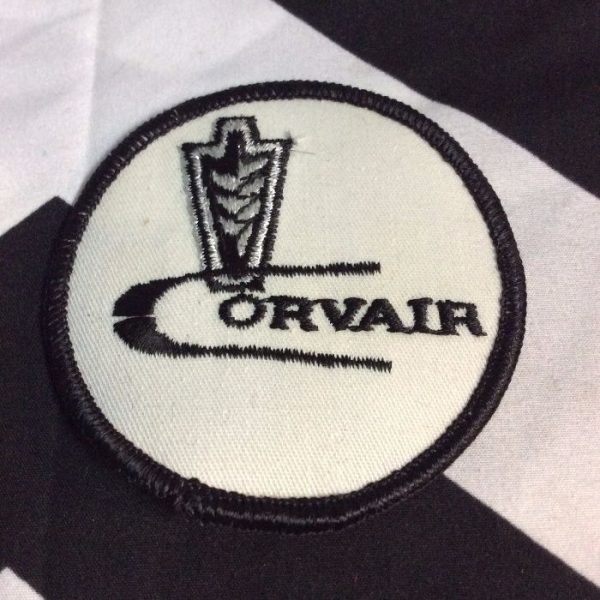RETRO EMBROIDERED PATCH, CORVAIR EMBLEM, OLD STOCK, WHITE/SILVER/BLACK, SIZE 3″