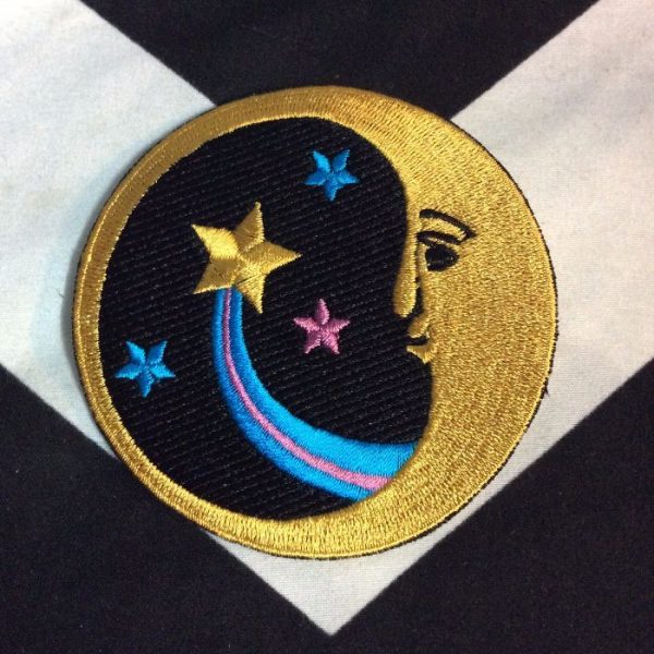 RETRO PATCH, MOON/STARS/COMET, OLD STOCK, GOLD/PINK/BLACK/BLUE