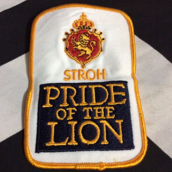 VINTAGE EMBROIDERED PATCH – STROH’S LIGHT BEER – LION EMBLEM DESIGN