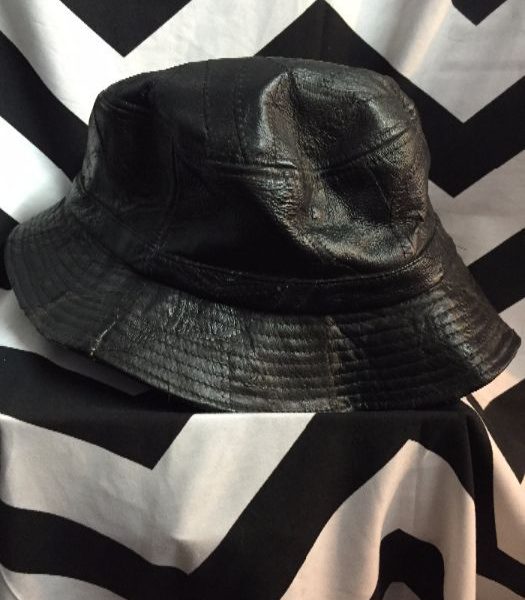 Leather hat, patch work, bucket style, black