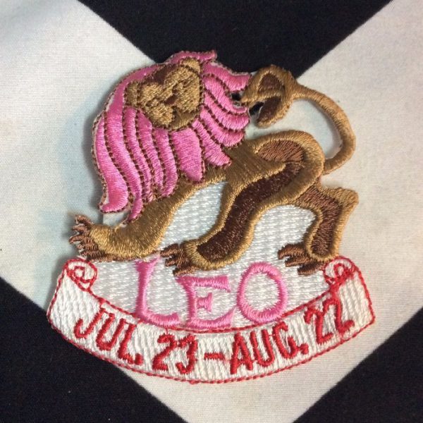 Patch, Leo, zodiac sign, white/pink/brown/red, size 2.5 x 2.5