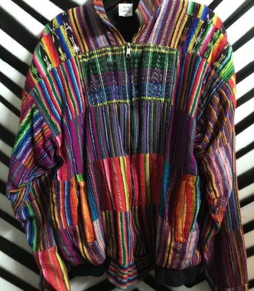 BOMBER JACKET W/MULTI-COLOR ETHNIC PATCHWORK DESIGN
