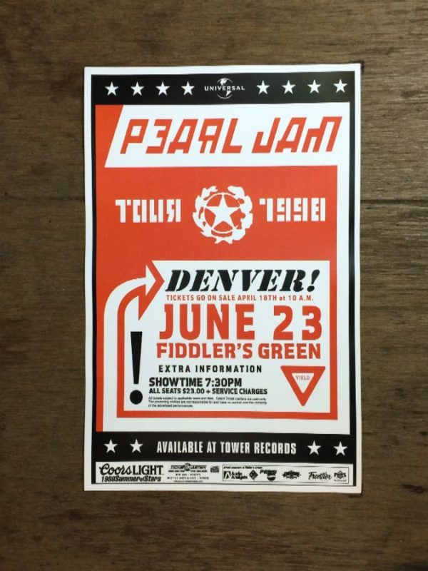 PEARL JAM AT FIDDLERS GREEN TOUR 1998 CONCERT POSTER