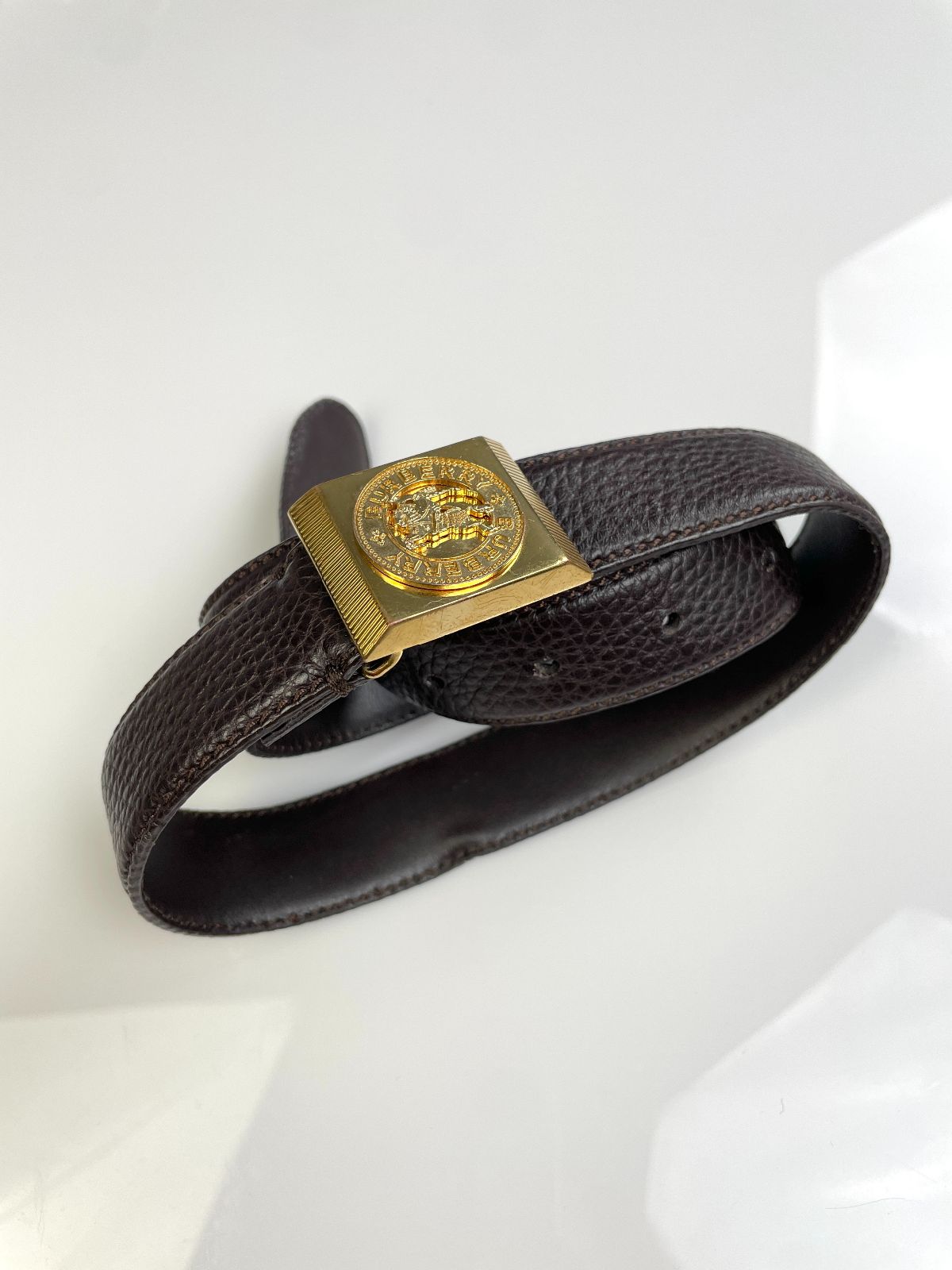 PEBBLED LEATHER DRESS BELT, HEAVY GOLD BUCKLE CLASSIC KNIGHT ICON