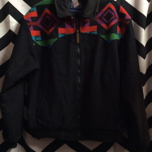 Pendelton bomber jacket, zip-up, wool, Navajo pattern, black/red/multi, size S
