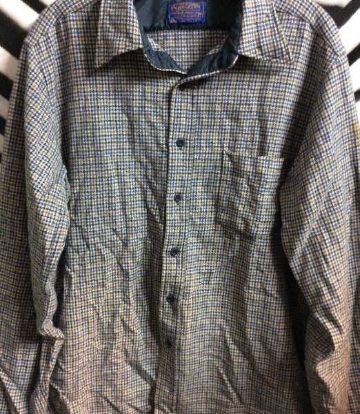 PENDLETON WOOL LONG SLEEVE BUTTON UP FLANNEL W/ EXTENDED TAILORED SIDES