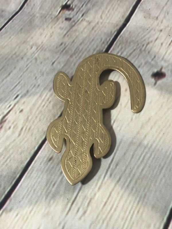 1980S OVERSIZED MATTE GOLD BROOCH PIN LIZARD TRIANGLE EMBOSSED