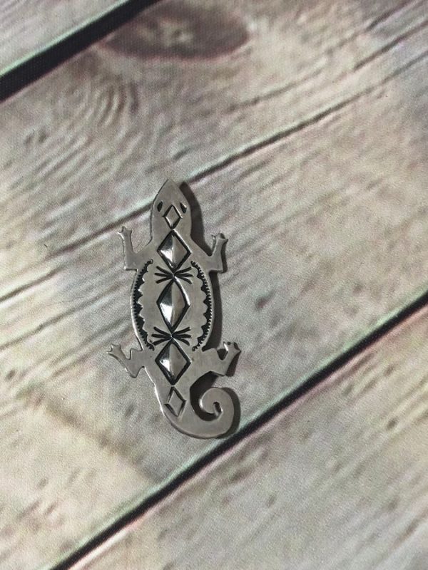 Brooch/pin, lizard with diamond design on back, 925 Sterling silver, silver