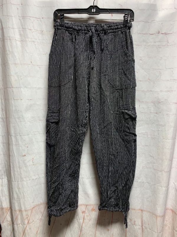 PIN STRIPED LINEN LOOK BEACH PANTS W/ CARGO POCKETS