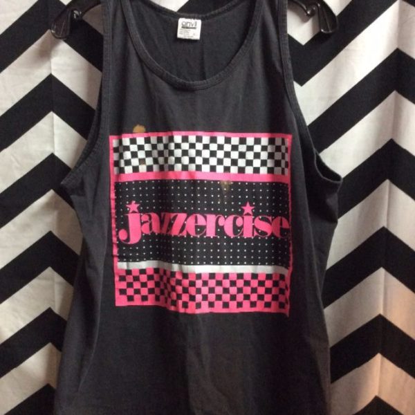 TANK TOP – JAZZERCISE – CHECKERED GRAPHIC DESIGN W/LETTERING