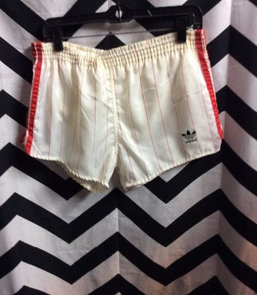 ADIDAS SHORTS – RUNNING STYLE – STRIPES DOWN SIDES – PINSTRIPED DESIGN