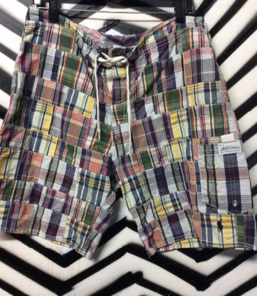 POLO SWIM TRUNKS W/PLAID DESIGN