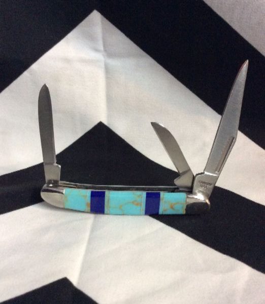 POCKET KNIFE W/NATURAL TURQUOISE & LAPIS INLAYS