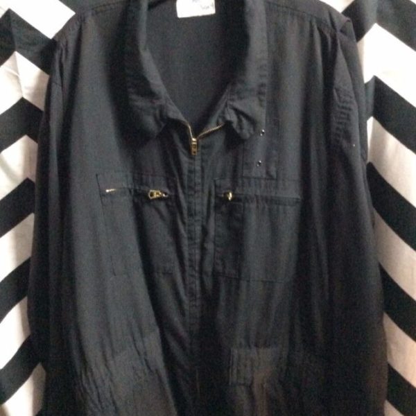 JUMPSUIT, ZIP-UP, POLICE COVERALLS, FRONT ZIP POCKETS, BLACK, SIZE 48