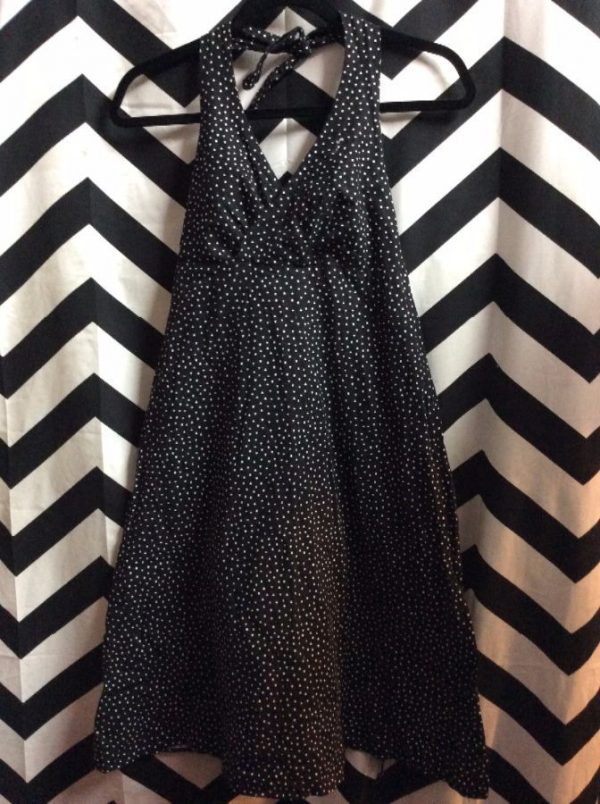 POLKA DOT PRINT COTTON HALTER DRESS W/SWEETHEART NECKLINE