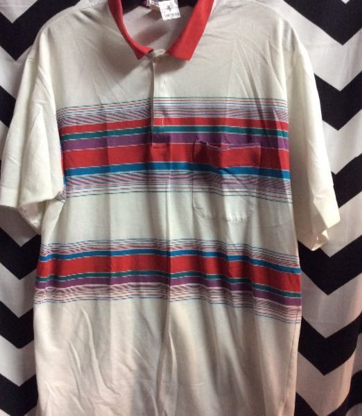 POLO STYLE T-SHIRT W/MULTI STRIPE DESIGN