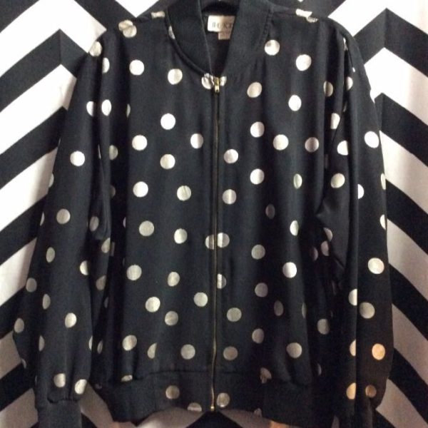 POLYESTER SILVER POLKADOT ZIP UP BOMBER CUT JACKET