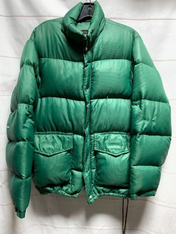 Jones puffer jacket, zipper & snap-up, goose down filled, puffy, quilted, green As is (green)