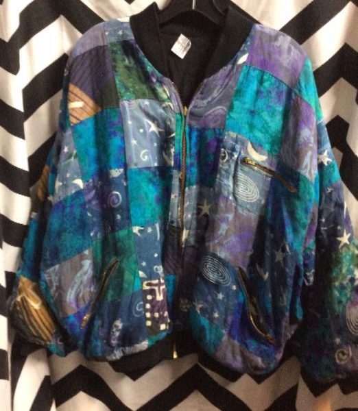 BOMBER JACKET – PUFFY – PATCHWORK W/MOON & STARS DESIGNS