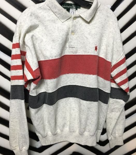 POLO PULLOVER SWEATSHIRT W/COLLAR – HORIZONTAL STRIPED DESIGN
