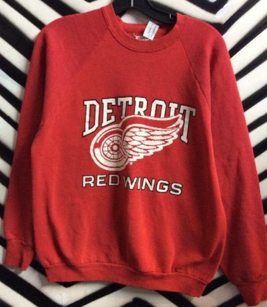 Pullover sweatshirt, Detroit Red Wings, screen printed design, Red shirt with white designs, size L