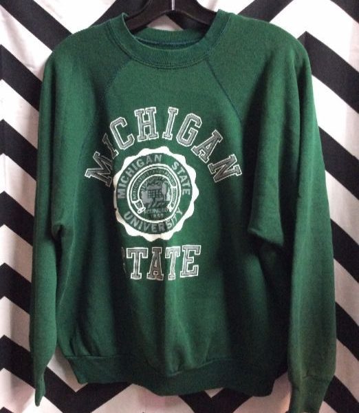 Pullover sweatshirt, Michigan State, screen printed graphic, forrest green/white, size S