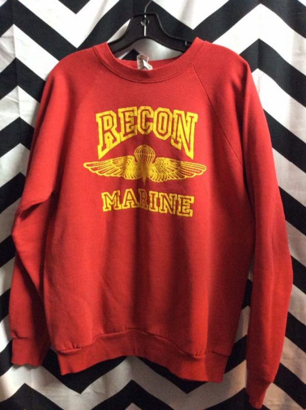 Sweatshirt, pullover, Recon Marine, screen printed graphic full graphic, red/yellow, size XL