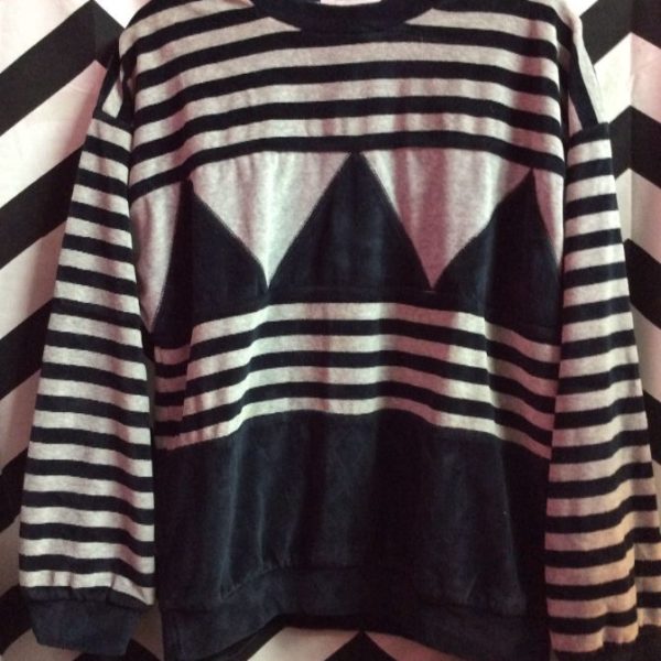 PULLOVER VELOUR SWEATER W/ STRIPES & COLOR BLOCK