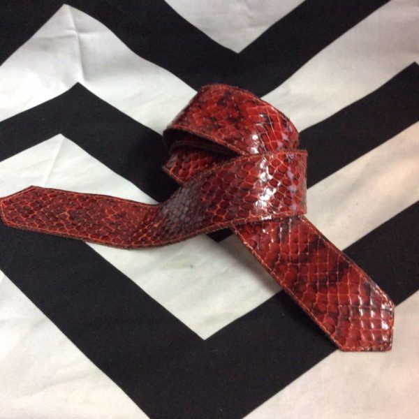 BELT, LEATHER, SNAKE SKIN, PYTHON, RED MISSING BUCKLE