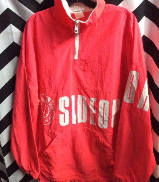 Sideout windbreaker jacket, partial (1/4) zip-up, day-glow colors, dayglow red/white, size XL