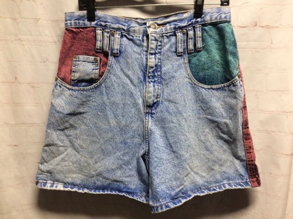 RAD 1990’S COLOR-BLOCK DESIGN DENIM SHORTS